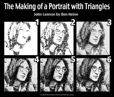 portrait made with small triangles mainly. There are